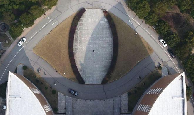 在上海东海学院有个极其诡异的猫眼花坛,整个形状整的和猫眼相似,看看上面的图片就知道了,越是奇形怪状的建筑越是有着诡异之处。据说这个猫眼花坛是为了镇住鬼物的,而门口保安室的房顶是个棺材板,猫眼花坛这里的旗杆是三炷香,向来不升国旗的。