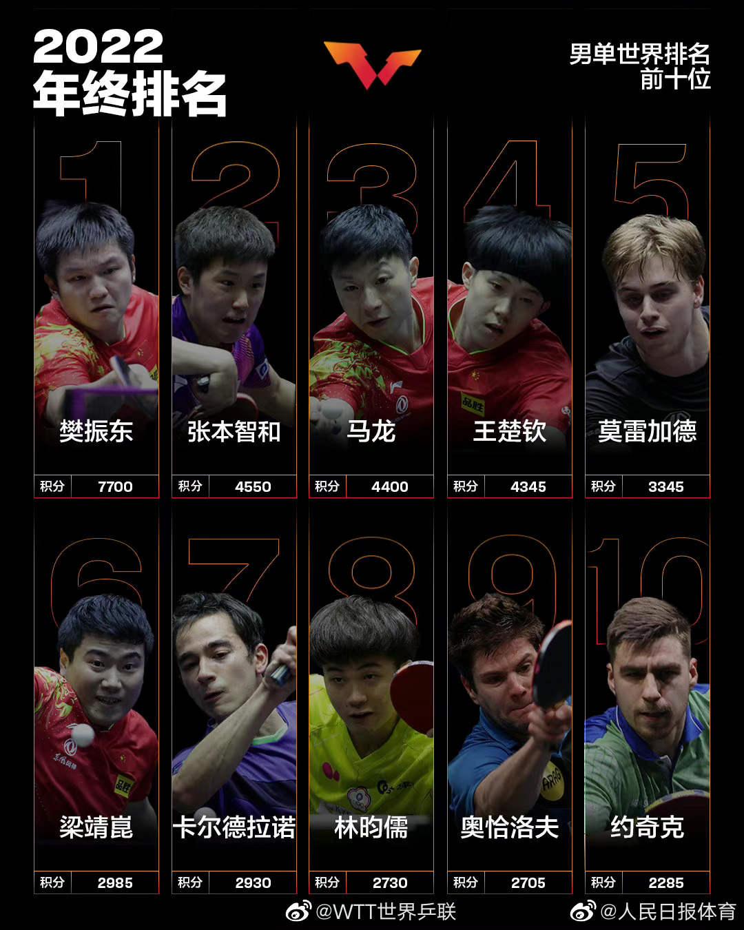 孙颖莎成首位00后年终世界第一(孙颖莎个人世界排名) 2022-12-29 热点新闻 8863 作者:网友投稿 国际乒联2022年终世界排名出炉,中国队小将孙颖莎以8270分收获了自己职业生涯的第一个年终世界第一,这也是00后选手第一次拿到年终第一的成绩。恭喜!